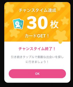 これがチャンスタイム中に30人に「いいかも!」を送り終えたときの画面です。
