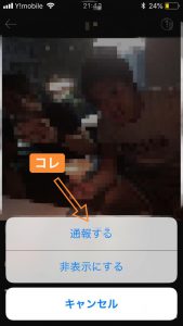 相手のプロフィール画面右上の「!」のマークをタップすると