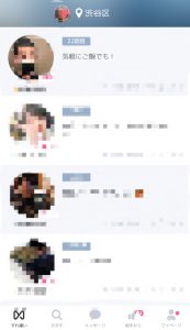 クロスミーをインストールしておくと、街中や公共の乗物ですれ違ったユーザーが出てきます。