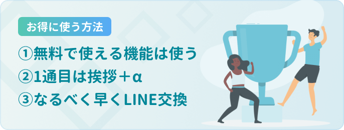 お得に出会うためには、選り好みせず無料でアプローチできる相手には極力アタックしましょう。