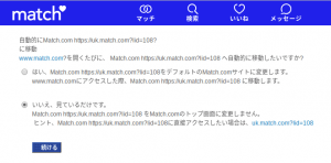 マッチドットコムは全世界で使われているので、国によって繋がるサイトが分かれています。