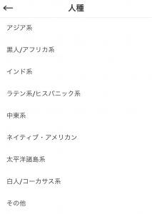 - 【経歴/価値観】欄から自分が出会いたい人種を選択