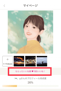 ③サブ写真の下部でもらったいいね数の確認ができます。