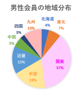 四国の人は会員数が少ないですが、総会員数が多いので女性の2%でも3千人以上の会員がいることになります。