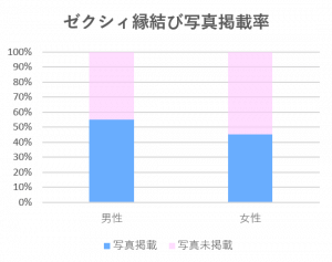 男女別の顔写真掲載率を他の婚活アプリ「ゼクシィ縁結び」と比較してみます。