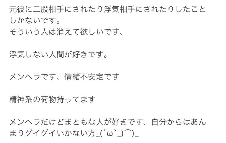 そこを自分のマイナス面、こんな人は嫌だ、と書く人はメンヘラの可能性が非常に高いです。