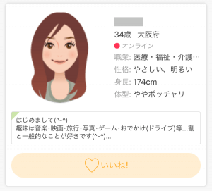 お相手を検索するとお相手のプロフィールの下にいいねボタンがあります。