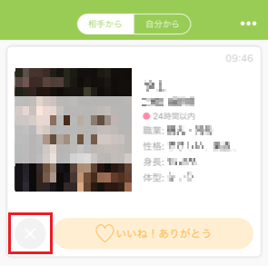 お相手からのいいね一覧の×印をタップすることでごめんなさいすることができます。