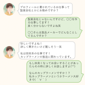 私のプロフィールは自分の性格についてメインに書いてあるので、ちゃんとプロフィールを読んで性格の部分にちゃんと触れてくれたのが嬉しくて返信しました。