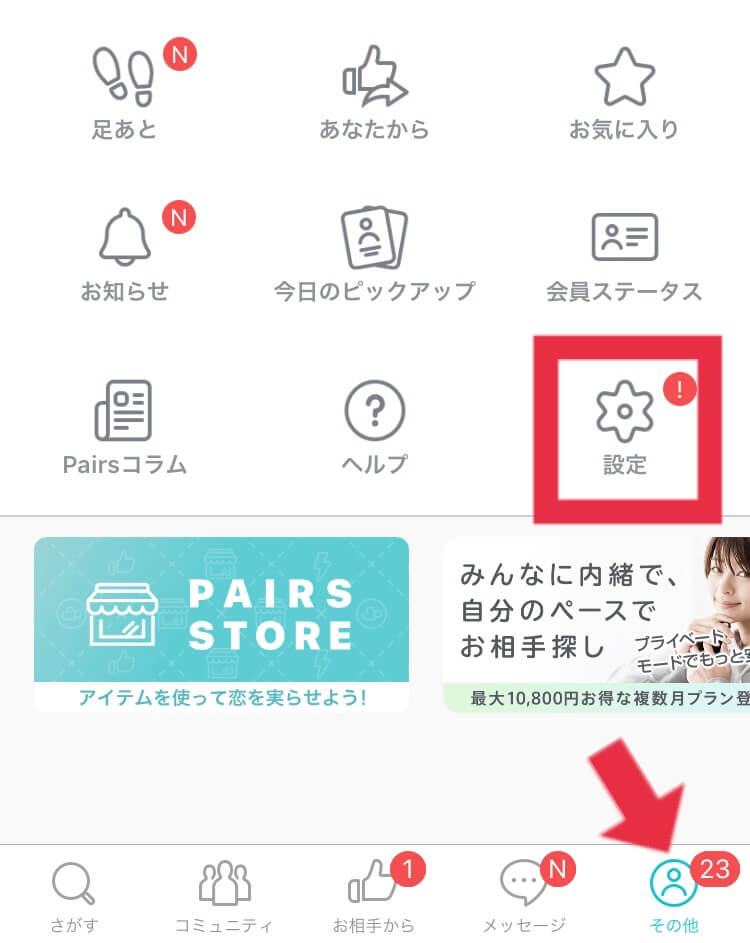 Pairs(ペアーズ)通知をオンにする方法・オフにする方法