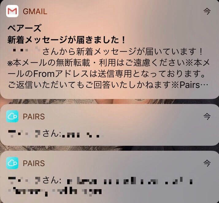 メールのプッシュ通知がオンになっているとメール通知でもPairsを利用していることがバレる