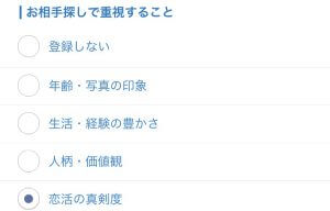 まず、「お相手の探しで重視すること」という項目。