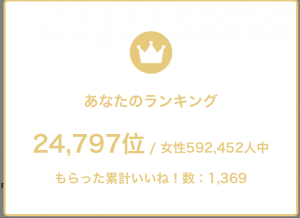 しかし、私の周りのOmiai会員のいいね数から考えると、平均以上のいいね数があるとランクインするのかと思われます。