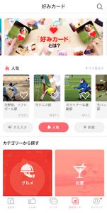 好みカードをカテゴリなどから探して自分の好みのカードを設定すると、同じ好みカードを設定している異性のお相手の一覧を見ることができます。