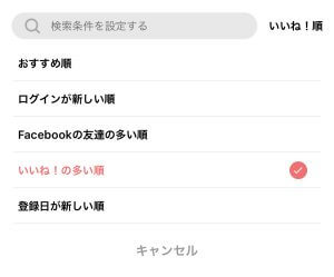 いいね数を増やすには他の並び順で上位になって、プロフィールを完璧にして、いいねをたくさんもらいましょう!