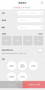 相手に求める条件を設定して検索することで、理想のお相手に出会いやすくなります。