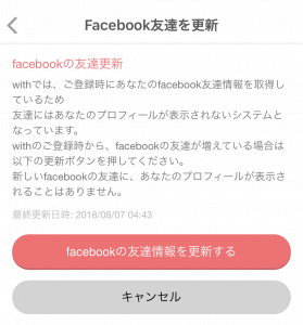 with(ウィズ)はFacebookの友達は検索結果に表示されないようになっています。