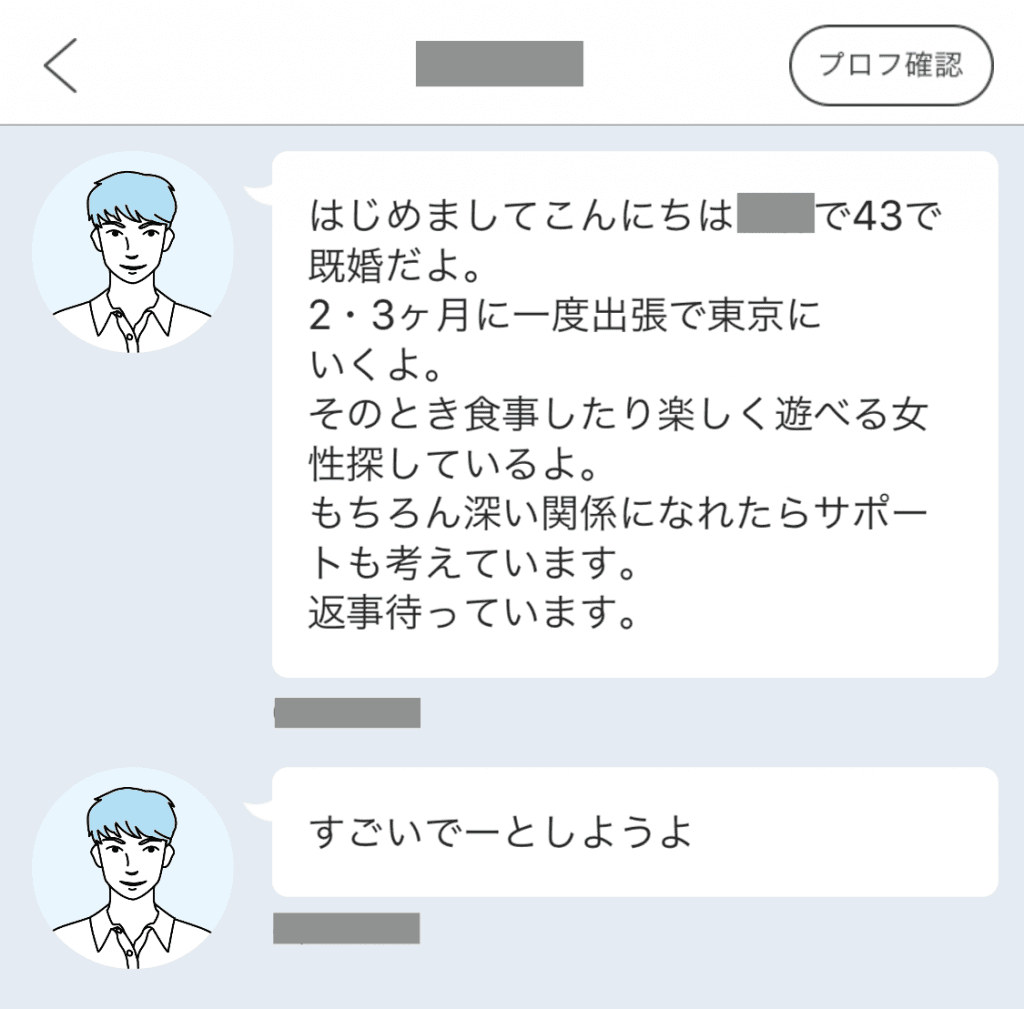 例えばこれ、ドン引きですよね。最初からセックス目的で利用しているとしてもこれはありえないです。あくまでもっと紳士にいきましょう。最初は下心を少し隠しているくらいがちょうどいいです。
