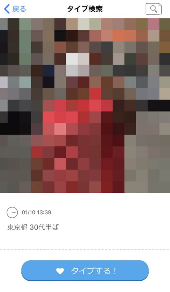タイプ検索では、ユーザーのプロフィールがランダムで表示され、気になるお相手を「タイプする!」ことができます。