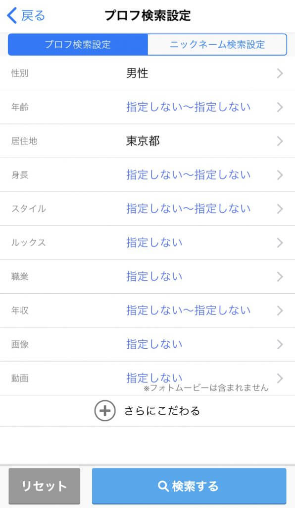また、特定の人を名前で検索したい場合は「ニックネーム検索設定」で探すことができます。