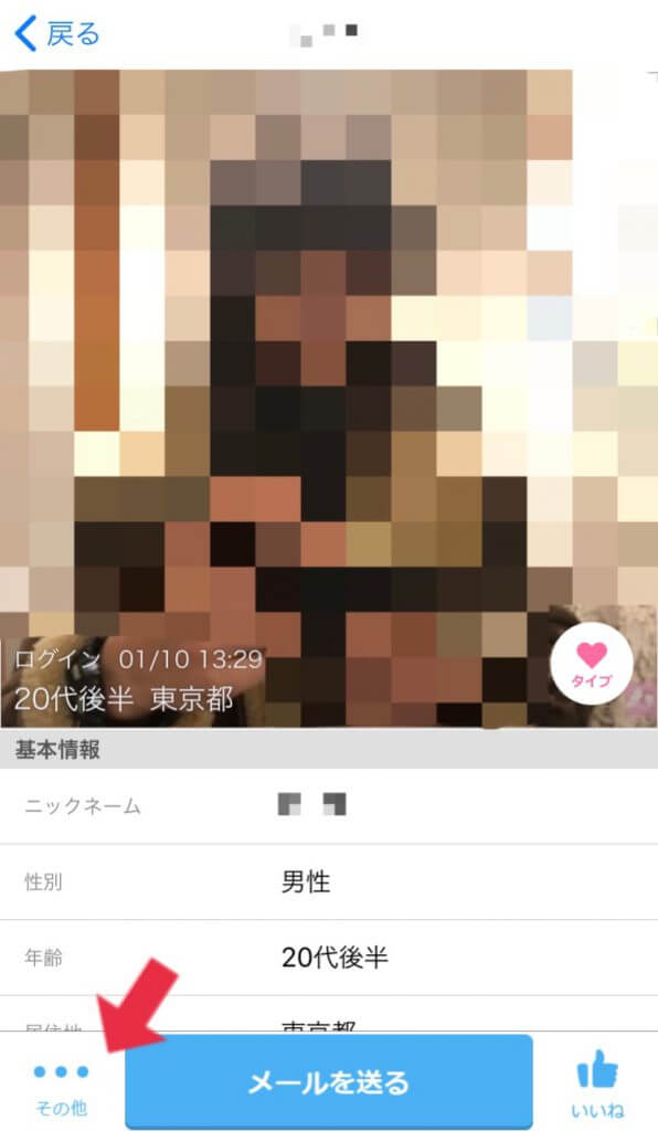 お気に入りの追加方法は、相手のプロフィールの「その他」からできます。
