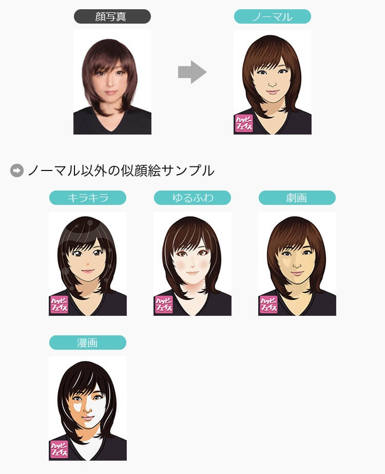 似顔絵では自分の写真から似顔絵を書いてもらうことができます。