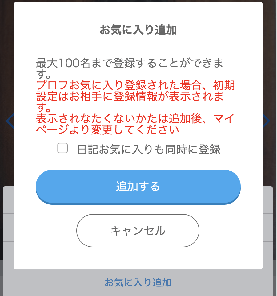 お気に入りに追加するメリットは、相手に自分の登録情報が表示される設定になっている場合、相手に無料で好意を伝えられることができる点です。