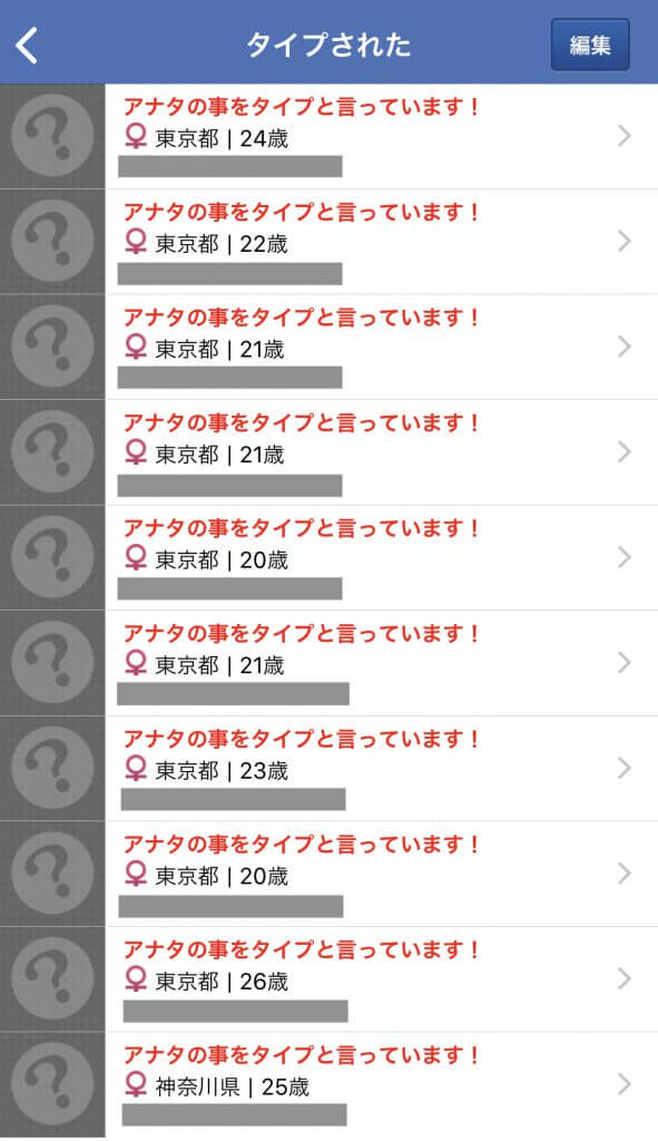 このタイプを送られてきた時点で業者を見極めるのはかなり至難の技です。アプリ版ではタイプしてきた人のプロフィール写真は見れませんし、Web版でもタイプしてきた人のプロフィール写真にはモザイクがかかっています。