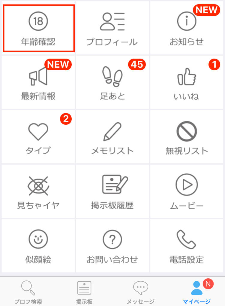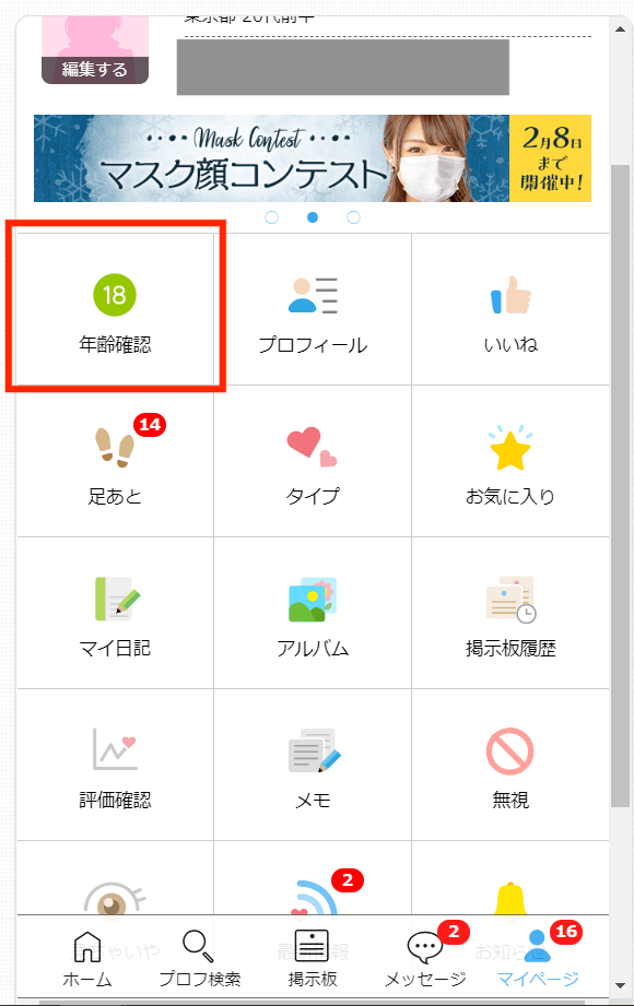 マイページの左上に『年齢確認』という項目があるので、そこをタップします。