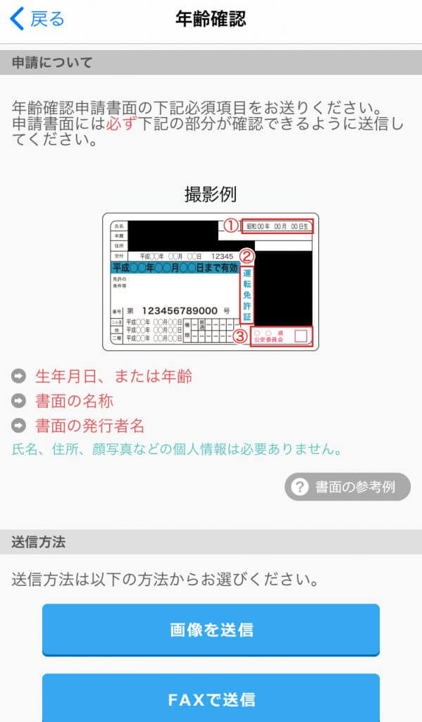 続いて、アプリ版でもWeb版でも利用できる身分証明書を使った年齢確認の手順をご紹介します。