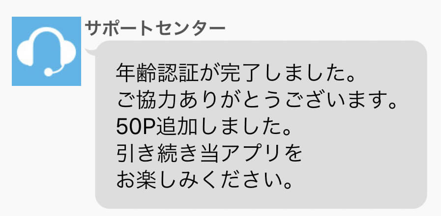 ハッピーメールの年齢確認を完了させると、50ptのボーナスポイントがもらえます。