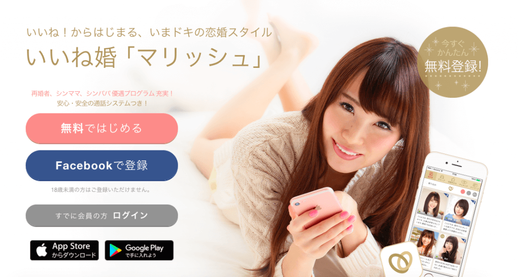 30代、40代向けの婚活・再婚活マッチングアプリです。