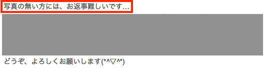 画像のように、顔写真のない人には返事をしないという人も一定数いるのでヤフーパートナーで出会いたい人は必ず顔写真を公開してください。