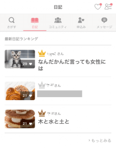 異性の検索機能の他にコミュニティや日記などの機能があるため、お相手の内面を知ってマッチングしたい人におすすめです。