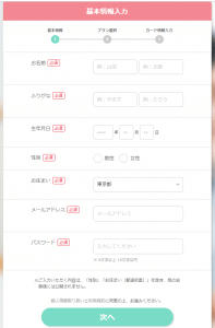 「お相手探しをスタート」をタップすると会員登録が始まります。