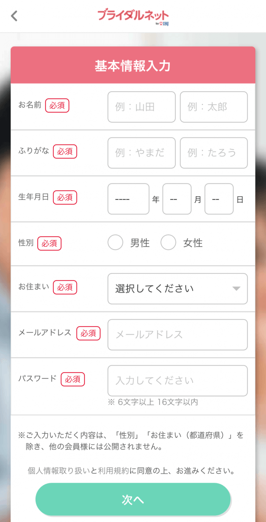 ブライダルネットの登録方法は以下の手順でおこなってください。