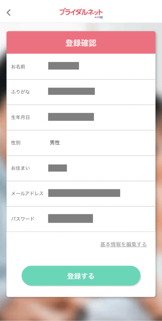 ブライダルネットはWeb版での登録は課金が必要ですが、アプリ版の登録は無料でできるので、ぜひアプリ版から登録してみてください!課金はWeb版の方がお得なので、Web版から課金しましょう。