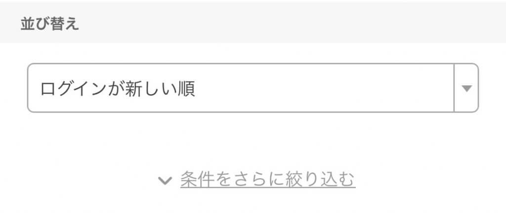 検索条件にある並び替えで『ログインが新しい順』にすると最終ログイン24時間以内の人が優先的に表示されるので、おすすめです。