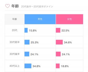 | 年齢層 | 【男性】20代半ば~50代 【女性】10代~40代 |