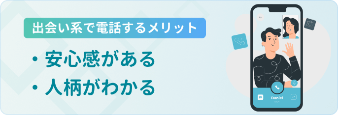 人柄がわかればデートまでに準備ができますし、もし気が合わなければデートをキャンセルして新しい出会いを探すこともできます。時間を有効活用できるのが電話のメリットです。