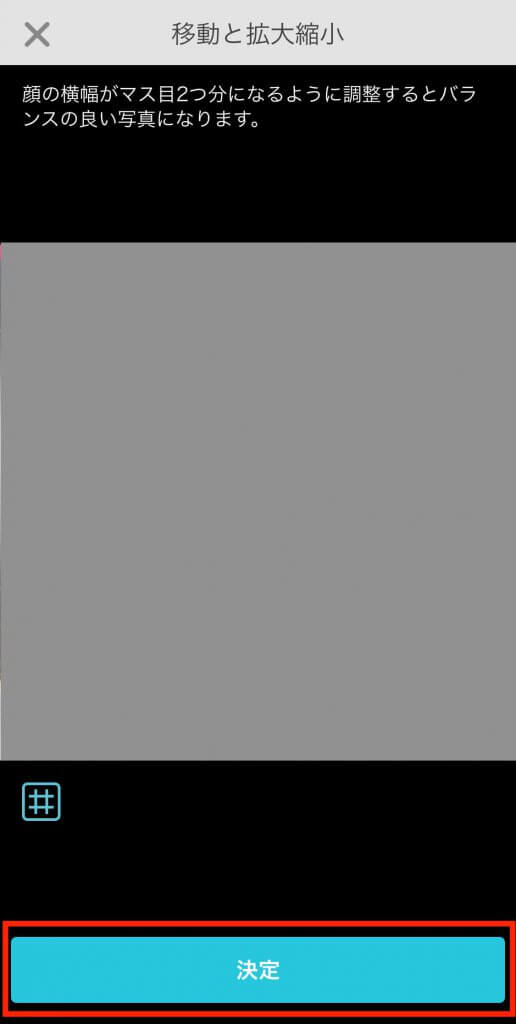 ④フォトライブラリから写真を選んだら、画像の配置とサイズを選択する。決まったら決定をタップ