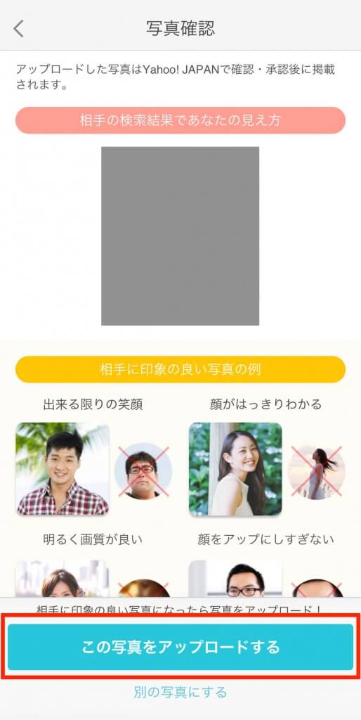 ⑤写真を確認して問題なければこの写真をアップロードするを選択