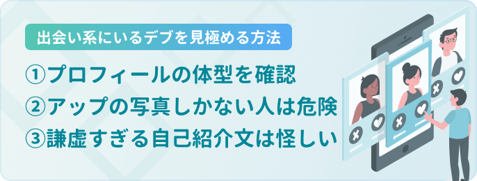 そこで今回は、出会い系でデブとぽっちゃりを見極める方法を徹底解説。併せてぽっちゃりが多いおすすめな出会い系サイトをご紹介するので、ぜひ参考にしてみてください。