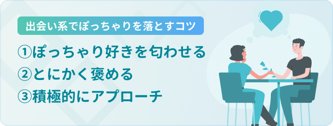ぽっちゃりに気に入ってもらうコツは3つ。それぞれ解説していくので、「ぽっちゃり彼女が欲しい」「ぽっちゃりなセフレを作りたい」という方は参考にしてみてください。