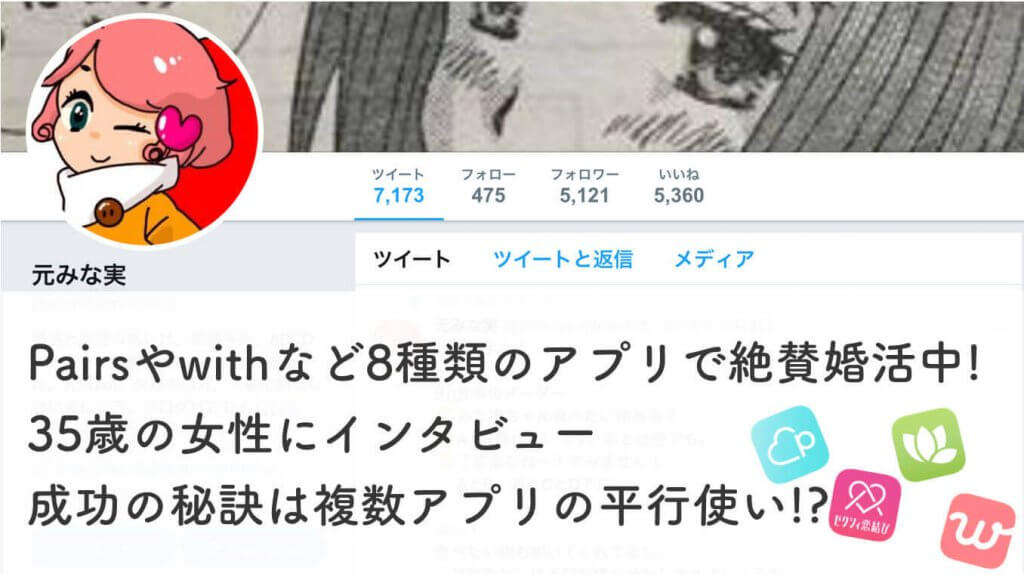 元みな実さん:まずはペアーズですね。でも、でも初めが肝心で、1ヶ月くらいやってると良いなぁと思える人がいなくなるんです。だからペアーズをやめて始めてを繰り返していました。もっと分母を増やしたい、もっと真剣度が高めなものもやってみたいと思って、with、ブライダルネット、ゼクシィ恋結びなど複数のアプリを平行して使うようになりました
