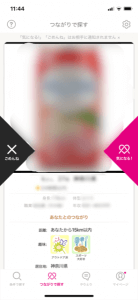 「つながりで探す」では表示されたお相手を「気になる!」か「ごめんね」で振り分けていきます。