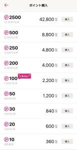ポイントの料金はこちらです。