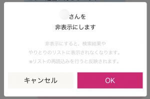非表示は相手のプロフィール画面やメッセージ画面の右上のボタンから設定ができます。