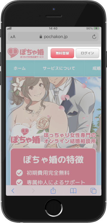 無料会員登録は、ぽちゃ婚のHP右上の「無料登録」から簡単に行うことができます。