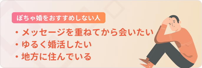 ぽちゃ婚が合っていない人もいるため、当てはまる人は違うサービスを検討することをおすすめします。